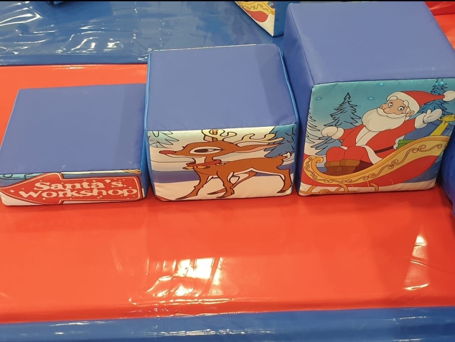 Wow a brightly coloured Christmas themed 17 piece soft play set , suitable for both boys and girls Christmas parties.