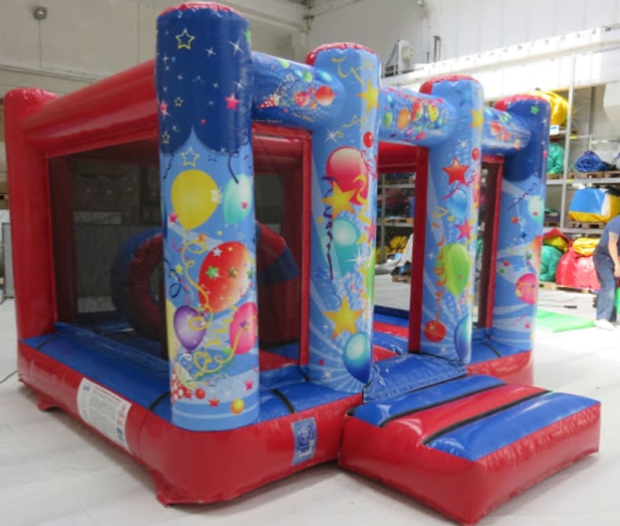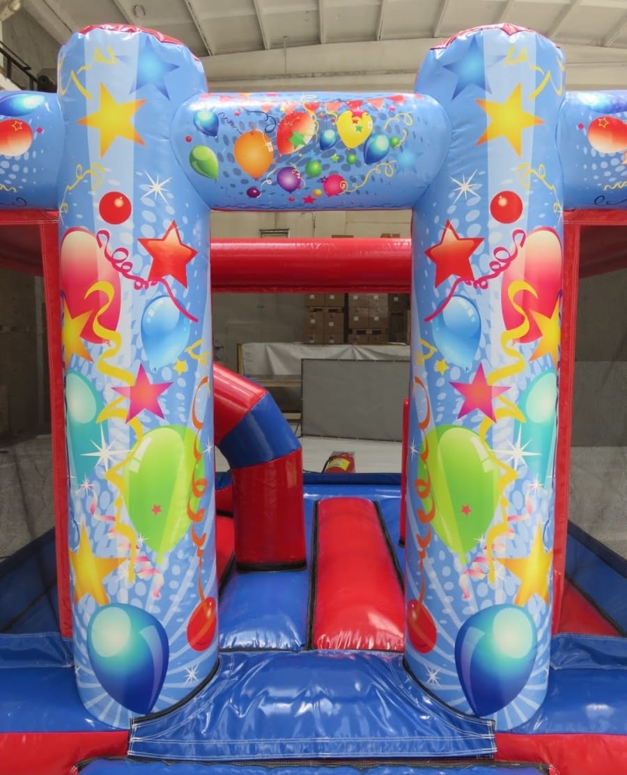This vibrant RED and BLUE themed inflatable is packed with excitement and features that will keep the younger ones bouncing with joy. The netted sides provide a complete view of the fun inside, giving parents peace of mind while the kids explore its engaging activities.