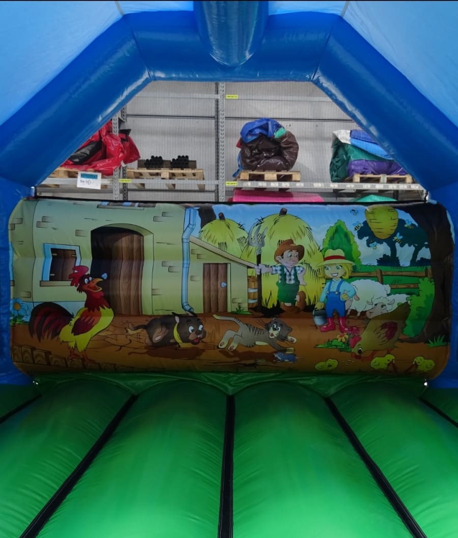 This bouncy castle has great vivid pictures of farmyard animals. Making it bright and colourful.