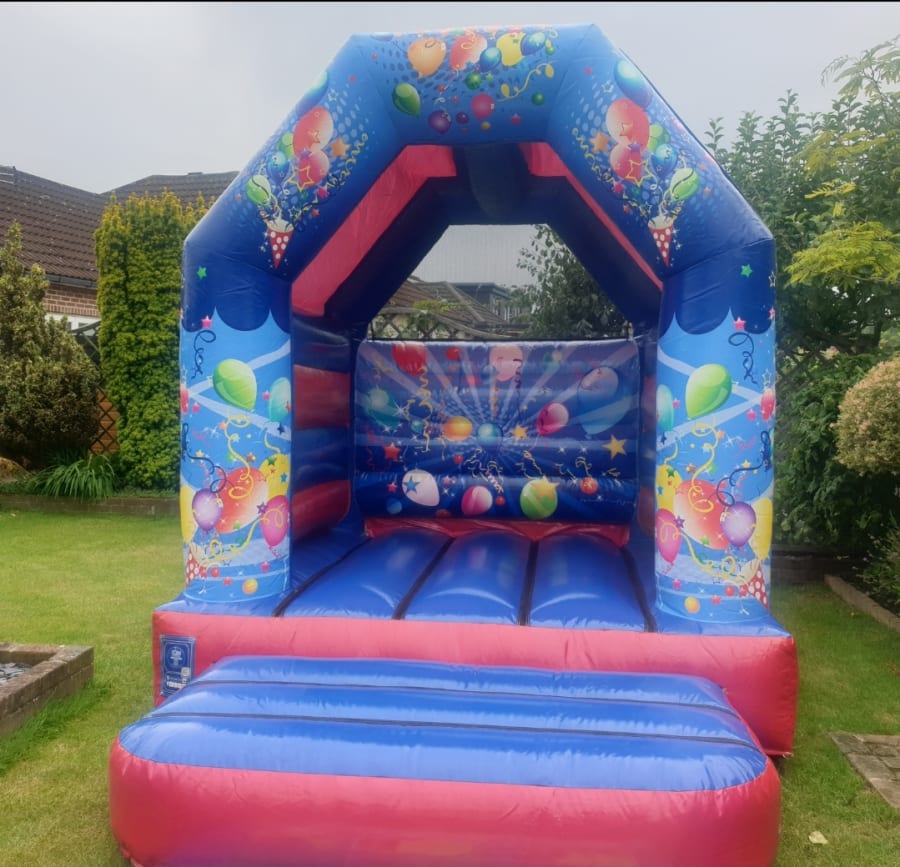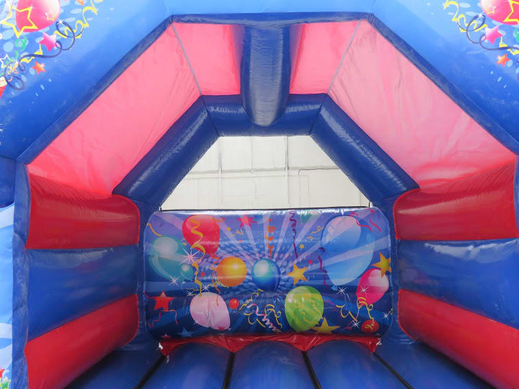 Party time red and blue themed bouncy castle