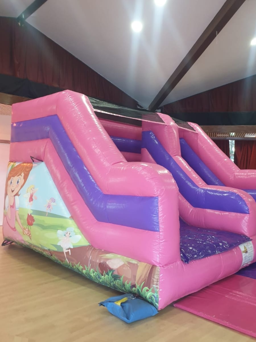 The slide has been designed in a Princess theme making it ideal for girls birthday parties.The side panels of the inflatable slide has a Princess theme.