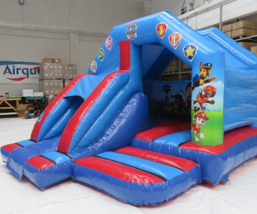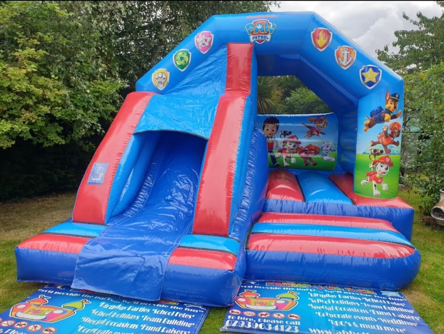 Our Paw Patrol Bouncy Castle is very popular at kids parties - family functions and christenings. The front panel features images of balloons and streamers, the bouncy castle also has a built in shower cover / sun shade.