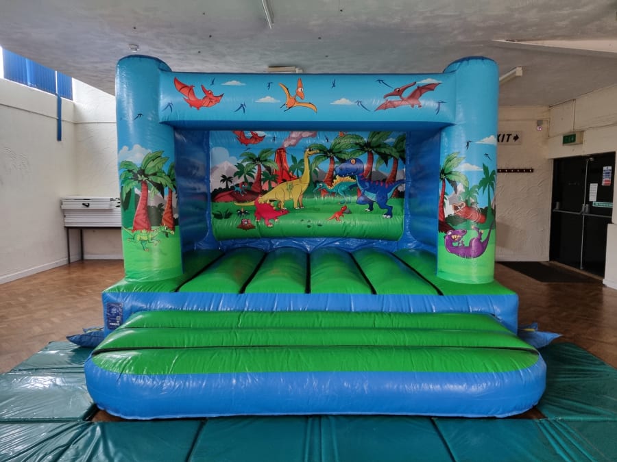 Bring the Adventure to Your Kids' Party with Our Dinosaur 12ft x 12ft Low Height H top Bouncy Castle