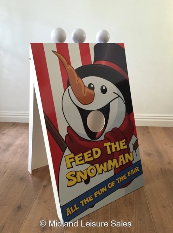 Feed the Snowman Christmas stall game is ideal for parties, fetes, corporate events and schools