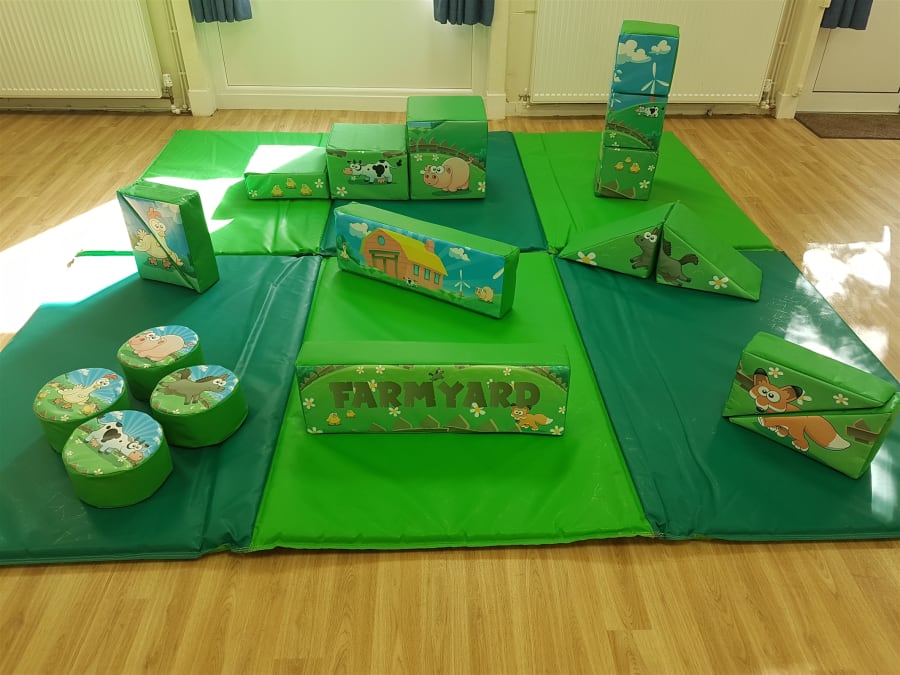 Please take a look at the additional photos to see the farm animal designs on this soft play set. The farm animals have been designed to stand out to the pre school age group of children.