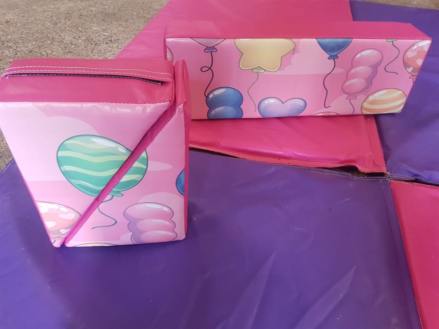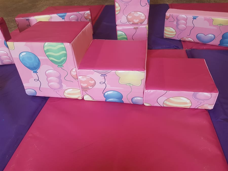 Wow a brightly coloured girls themed 18 piece soft play set , suitable for Christenings and girls Birthday Parties.