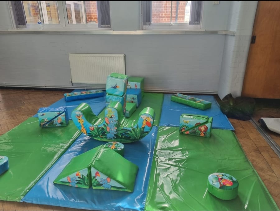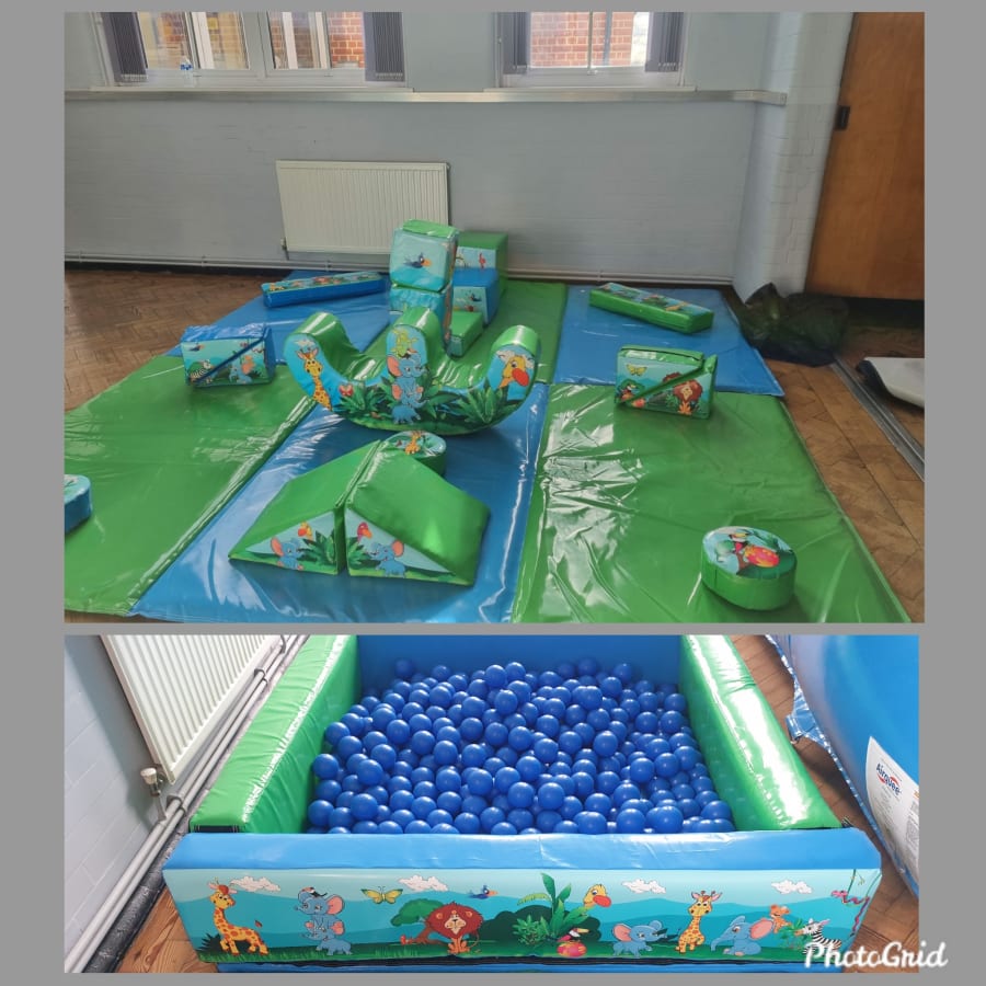 18 pieces of Jungle Junior themed Soft Play shapes for the younger ones and a ball pit.