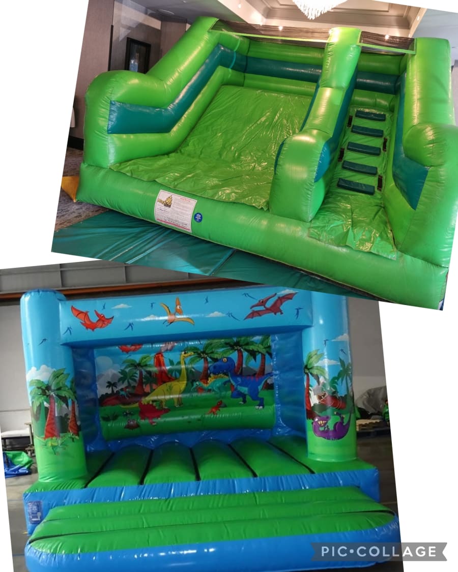 Unleash Dino Fun with Our Dinosaur Low Height Bouncy Castle and Slide Party Package! 🦖